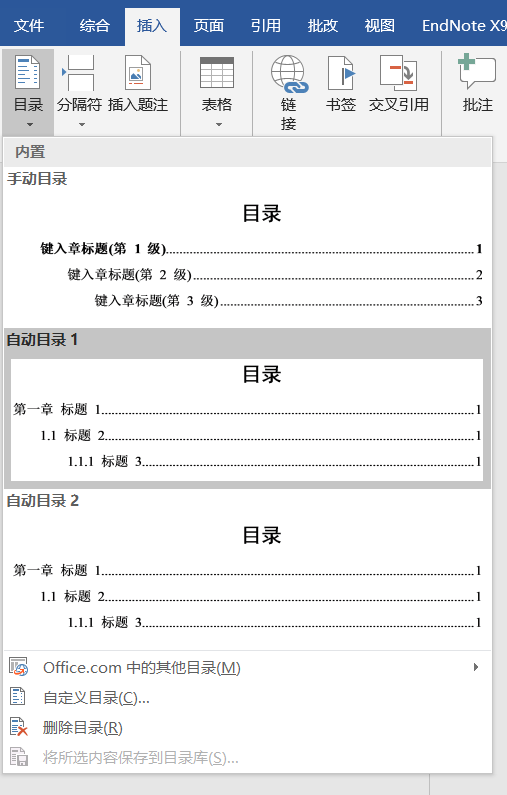 插入自动目录