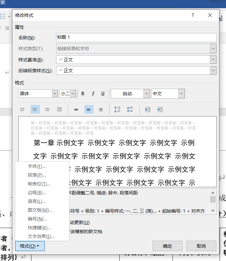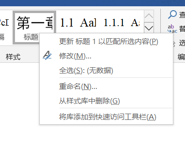 如下图所示,将1级标题的样式设为第一章、第二章。。。