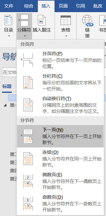 插入分节符+分页符