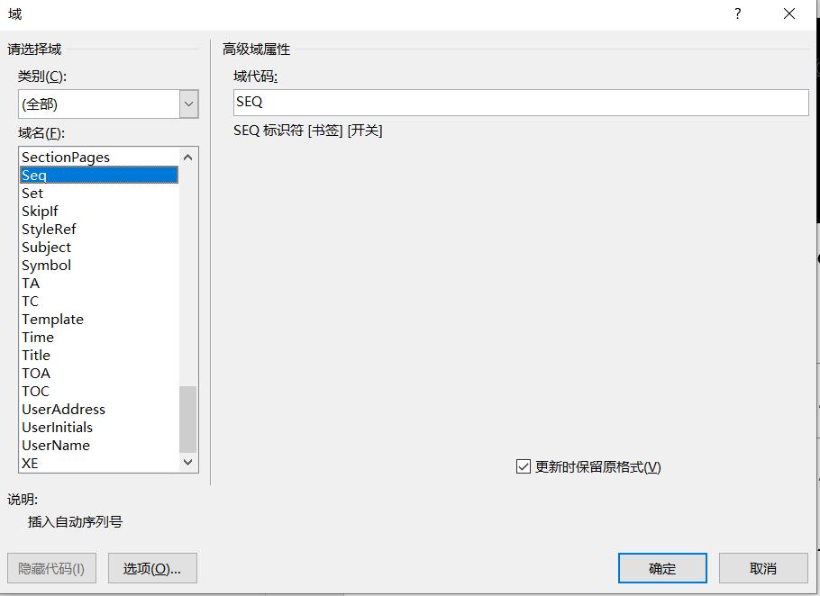 本来是用word的插入题注的功能的,但是在实现多级标注的时候出了一点小问题,只能说自带的插入题注的功能不够灵活。所以最后还是使用域来实现插图和表格的标注,域代码类似前面使用的公式标号域代码。