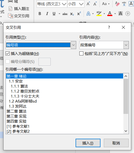 正文中使用交叉引用插入标号